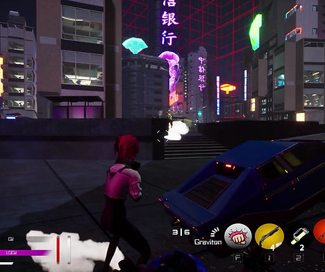 Immersive cyberpunk experience with challenging game modes. Future features include an AI ally system that enables players to create their own battle ally mid-match!